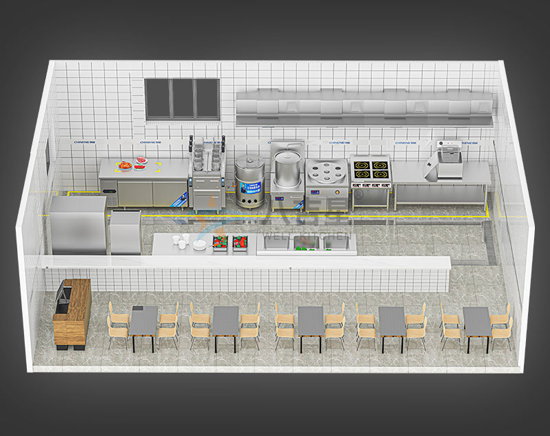 專供標準化連鎖餐飲廚房工程,針對中高端連鎖品牌,由資深商用廚房工程師根據品牌定位,裝修風格,菜品樣式,店鋪檔次等多維度進行廚房設計及設備配套方案,廚具設備可根據品牌風格進行外觀定制。